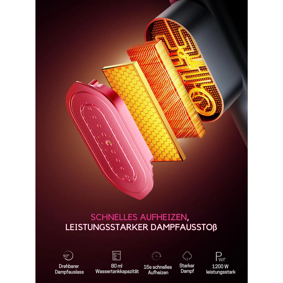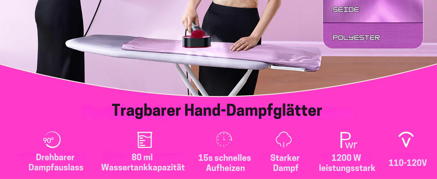 Geeignet für die meisten Stoffarten, darunter Baumwolle, Wolle, Seide und synthetische Materialien. Für empfindliche Stoffe wird eine niedrigere Einstellung empfohlen.